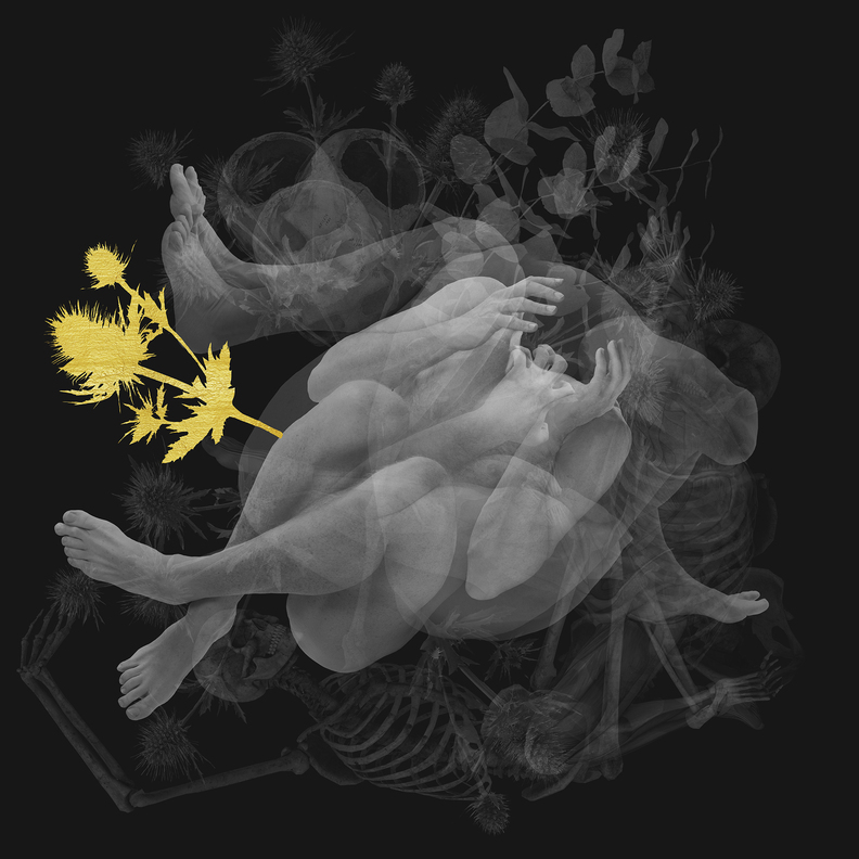 These patchworks composed of photographs from Canato's image bank combined with other existing images propose digital collages that include fragments of male bodies, including human skeleton and human anatomy imagery, flora, wildlife, religious and political symbols as well as medical objects such as lobotomy tools.
